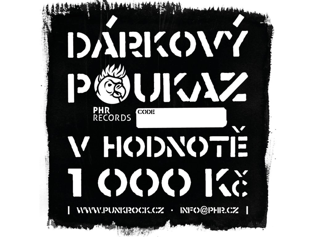 Dárkový poukaz v hodnotě 1 000 Kč. Ideální dárek pro fanoušky punku, co si chtějí vybrat hudbu, merch nebo knihy sami.