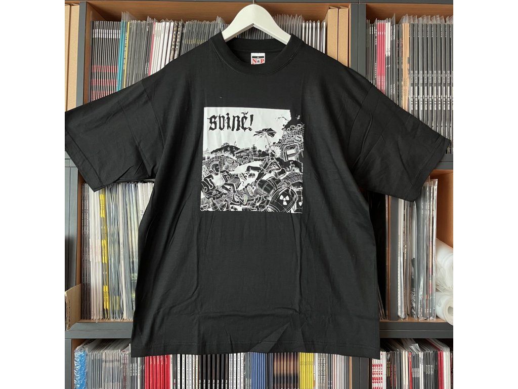 černé triko, bílý potisk